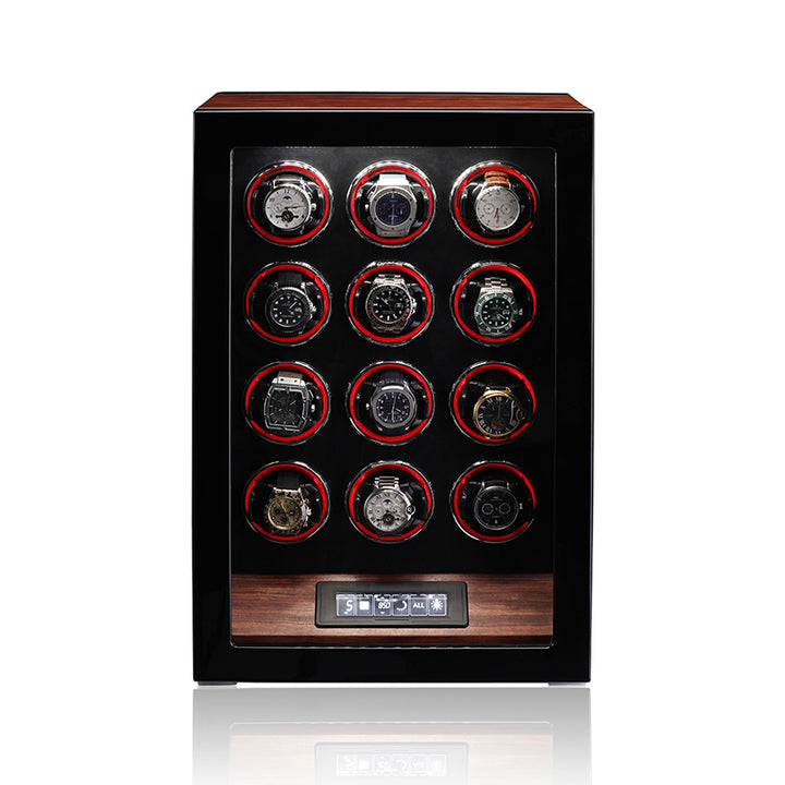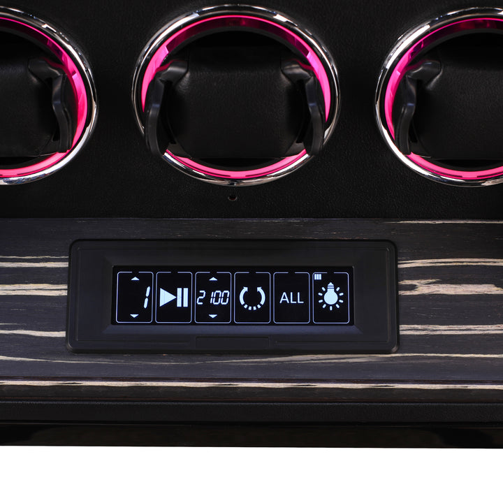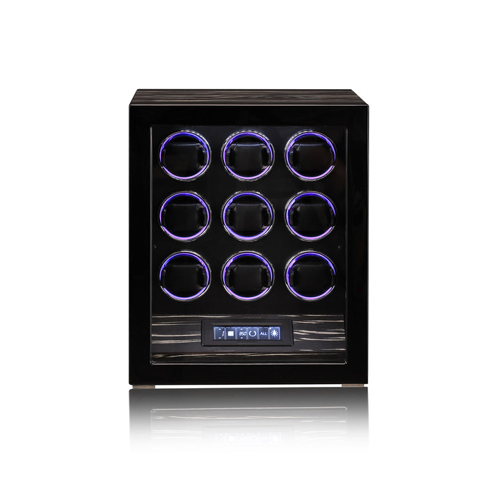 The intuitive LED touchscreen, remote control, and advanced fingerprint lock offerunparalleled convenience and robust security. With customizable LED lighting aroundthe rotors and a whisper-quiet Japanese Marlboro motors, this winder brings bothform and function to your home or office.