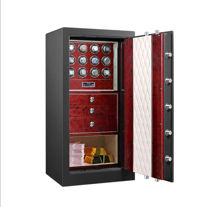 Its LCD touchscreen, anti-theft design, and fingerprint scanner provide maximumsecurity for your most valuable accessories. With Japanese Mabuchi motors and softvelvet cushioning, Velouris Titan Axiom keeps your watches running like clockwork. Invest in theultimate security solution for your luxury items and sleep soundly knowing that Velouris Titan Axiom has you covered.